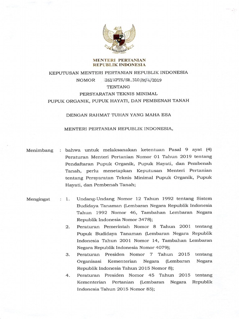 Isi dari SK Menteri Pertanian Nomor 699 KPTS KP.330 12 2004